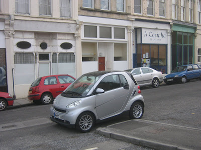 На фотке видно, как Smart может припарковаться там, где большие машины просто не в состоянии. Фото из Бристоля, Англия.